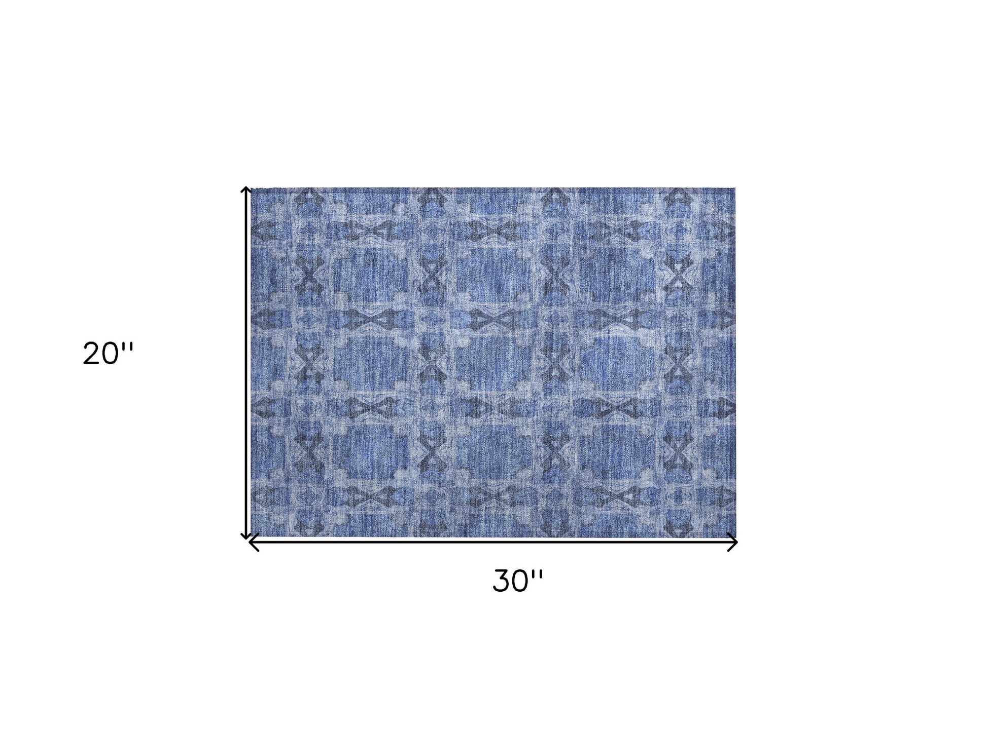 2' X 3' Denim Blue and Gray Floral Medallion Washable Non Skid Indoor Outdoor Area Rug