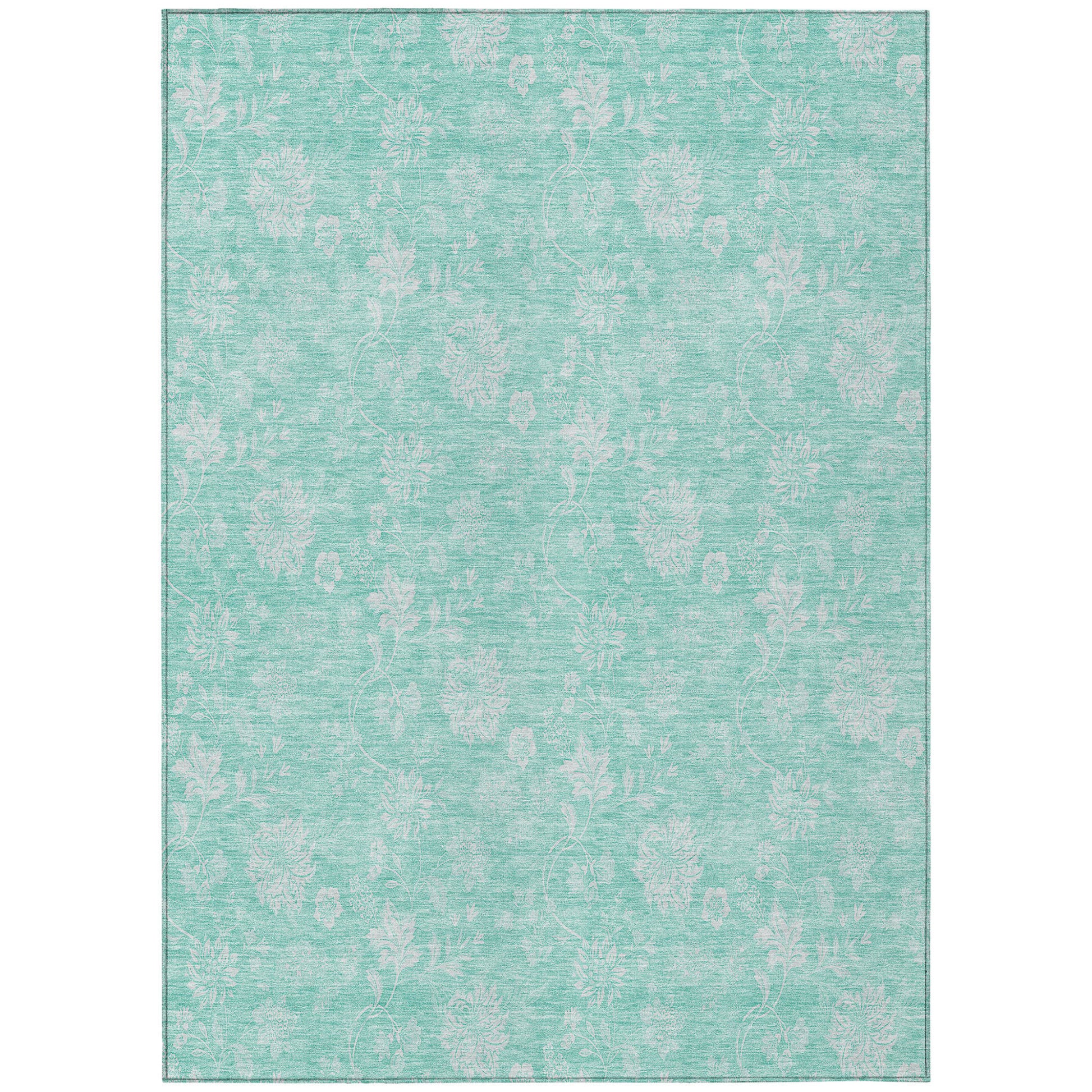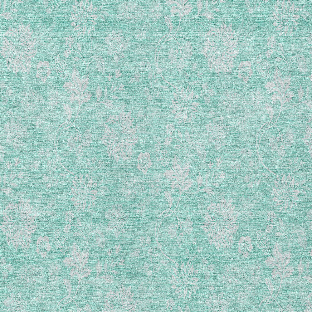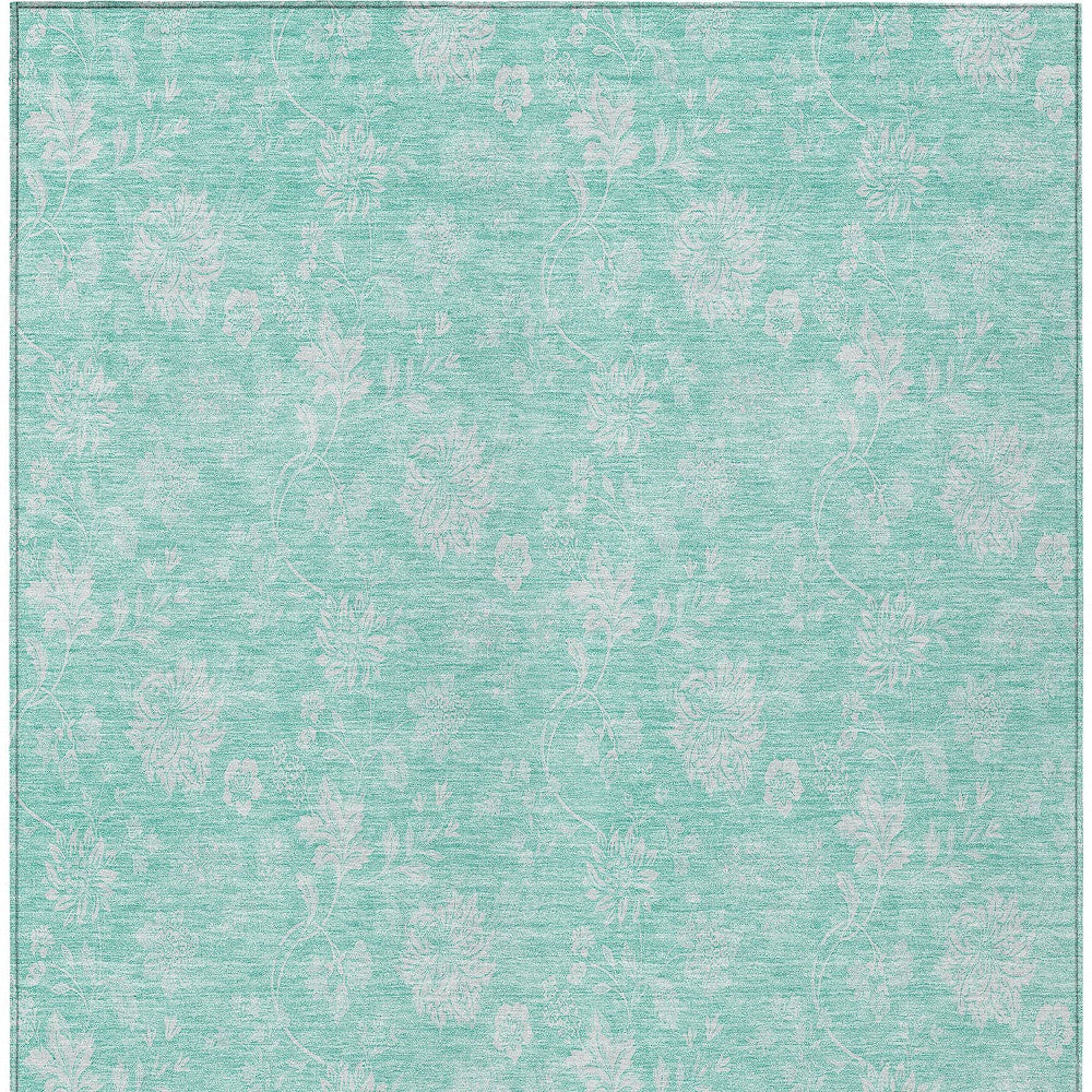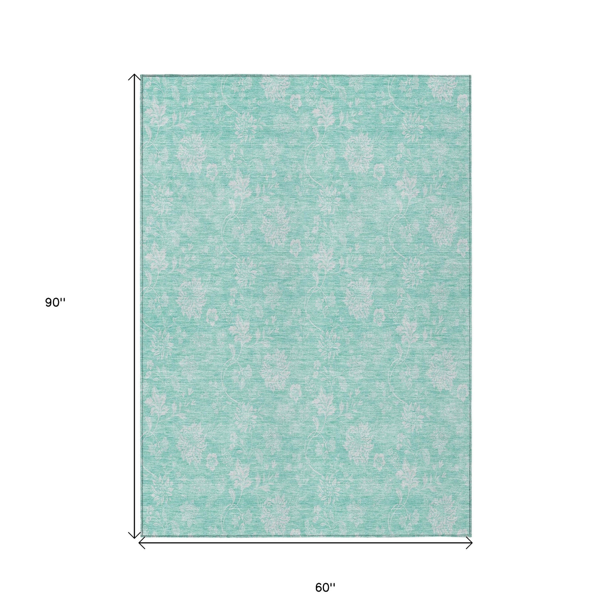 5' X 8' Aqua And Ivory Floral Washable Indoor Outdoor Area Rug